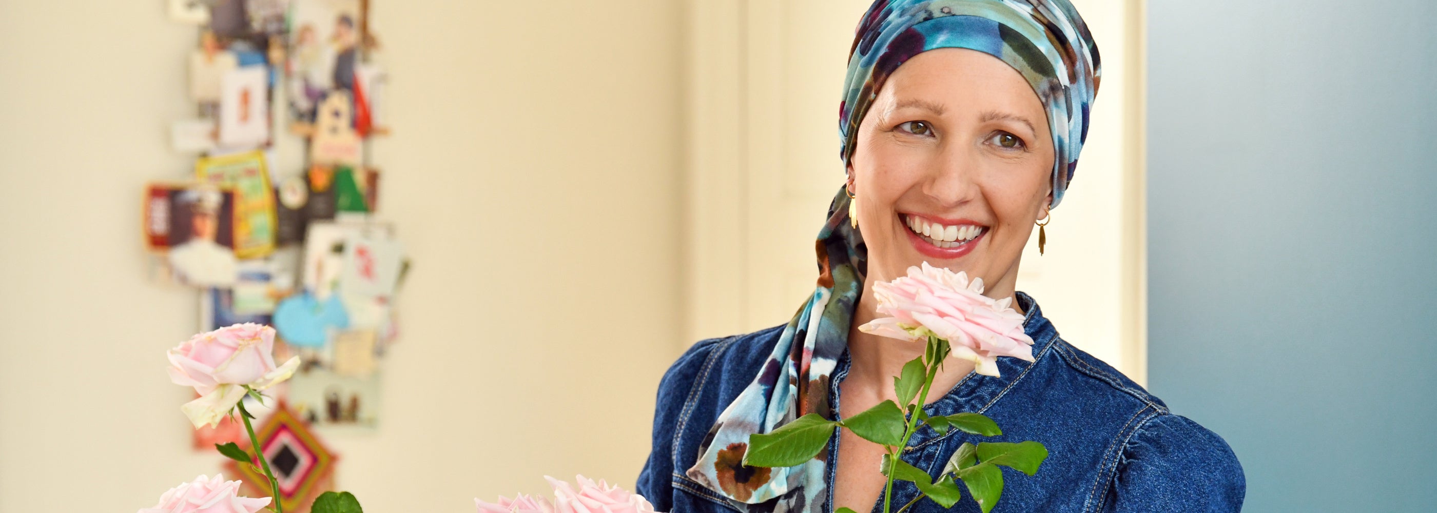 "Ik was 34 toen ik kaal werd door chemotherapie. Een pruik of haarwerk was echt niks voor mij. En in de winkels vond ik geen enkel mutsje goed genoeg: te ouderwets, te ingewikkeld om aan te doen, veel te veel jeuk. Dat kon en moest beter! Niet alleen voor mezelf, maar ook voor al die andere vrouwen die wel hun haar verloren maar niet hun gevoel voor fashion. En zo ontstond Rosette la Vedette, mijn eigen collectie hoofdbedekking."